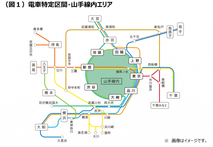 首都圏に設定している「電車特定区間」および「山手線内」の運賃は、国鉄時代に他の鉄道会社との競合などを考慮して、基本的な「幹線」の運賃より割安に設定されていましたが、今回の運賃改定により「幹線」に統合し「電車特定区間」「山手線内」が廃止されます。